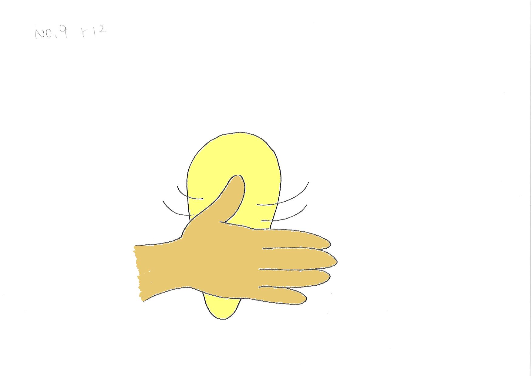 生地のとじ目が下のまま手で優しく押さえてガス抜きし、とじ目を上に返し手前から中心に向かって生地を折り込んでいき、とじ目をしっかりと押さえる。手のひらで生地の片側を転がし、しずく型に伸ばす。これを10個すべて行なう。