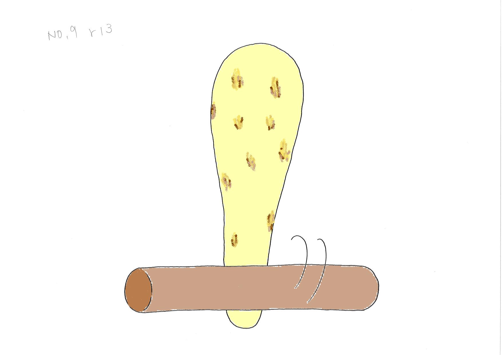 最初に作ったしずく型から成形する。台の上で手のひらを使ってやさしく転がし、20cmほどの細長いしずく型にする。その後めん棒で上から転がし生地を平らにする。