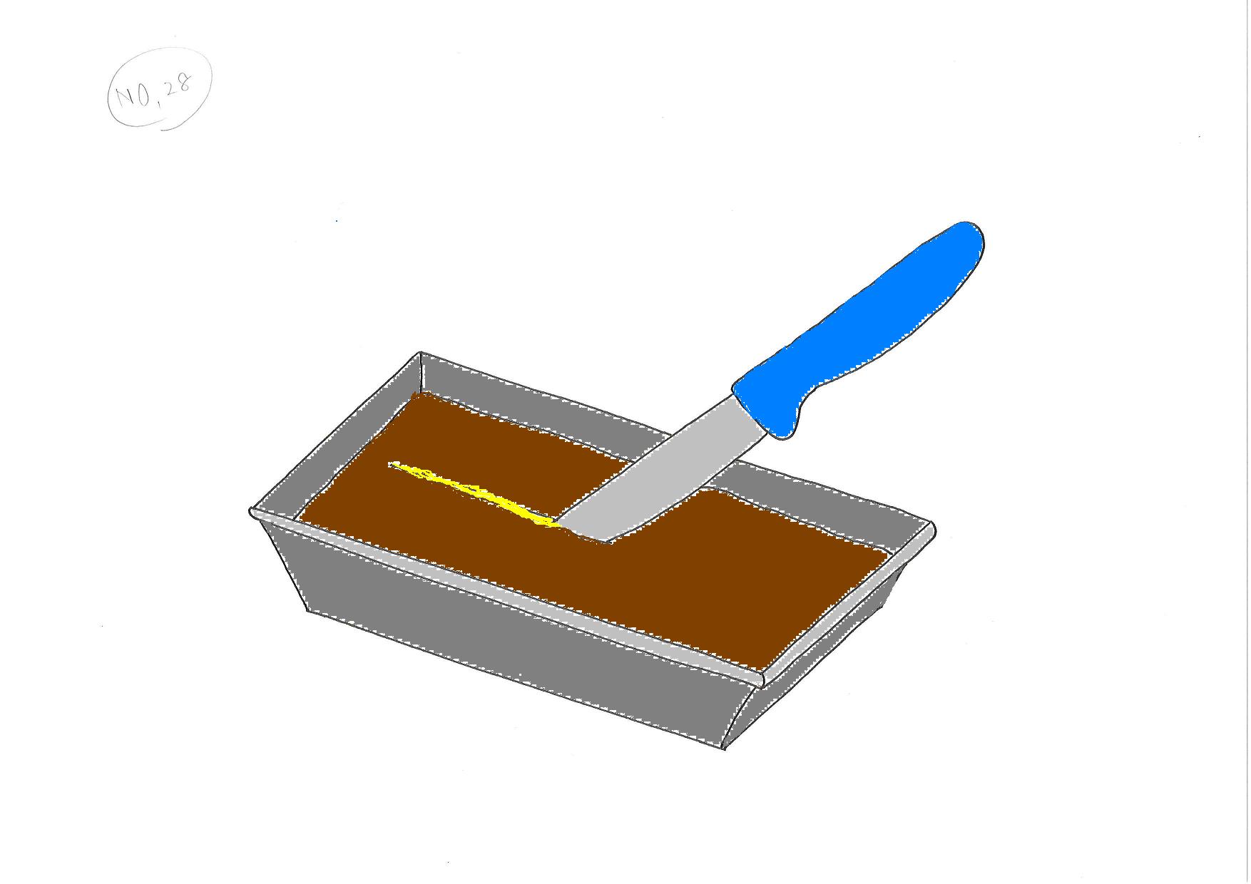 型に流してオーブンへ入れる。230℃で5分焼き、表面に軽くキツネ色がついたところで一度オーブンから出す。