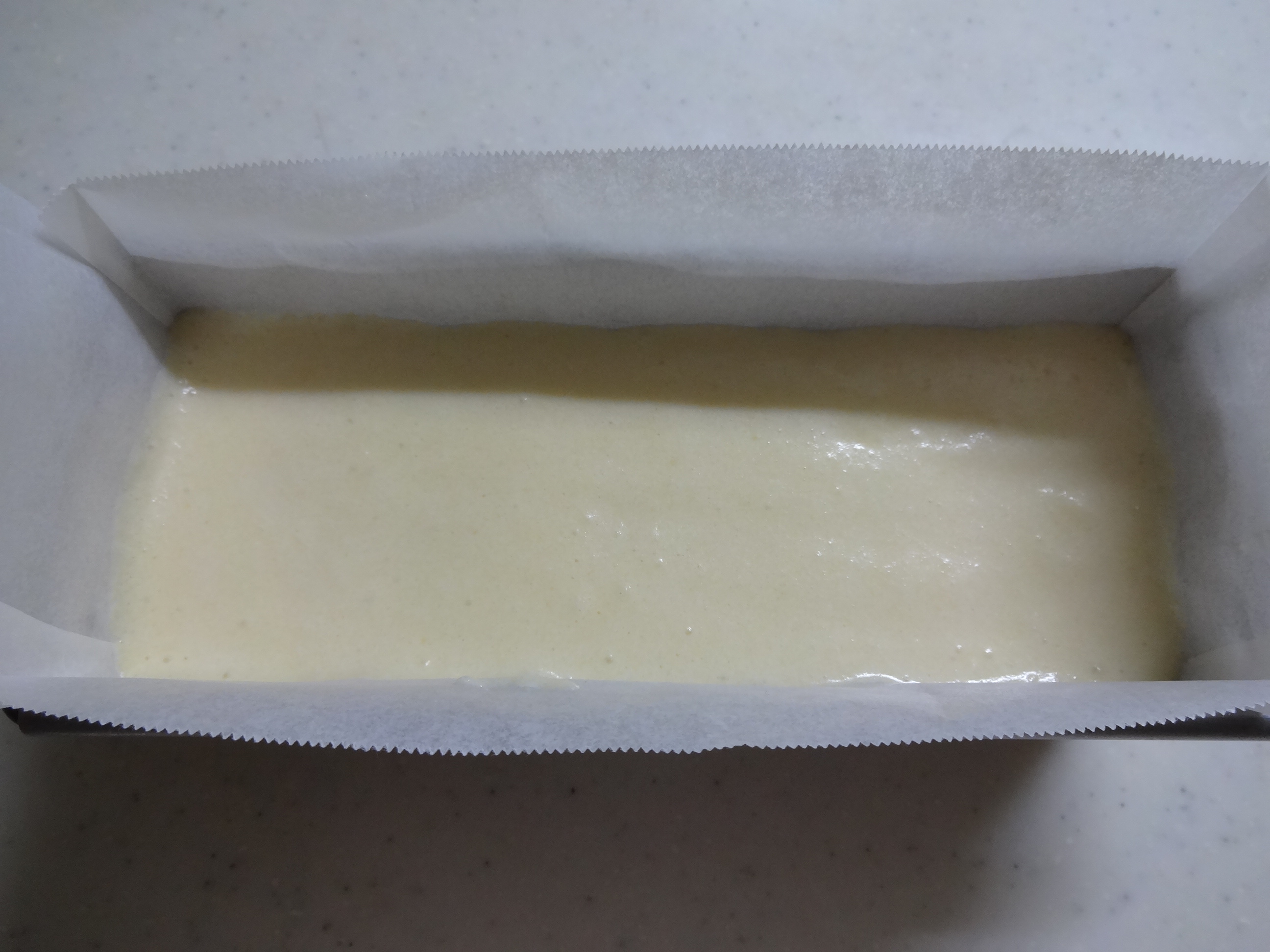 オーブンペーパーを敷いた型に生地を流し入れる。