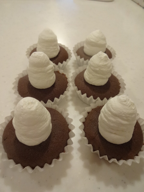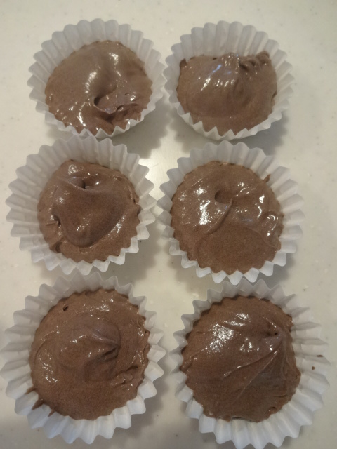 ベーキングカップ8ケに生地を入れる。