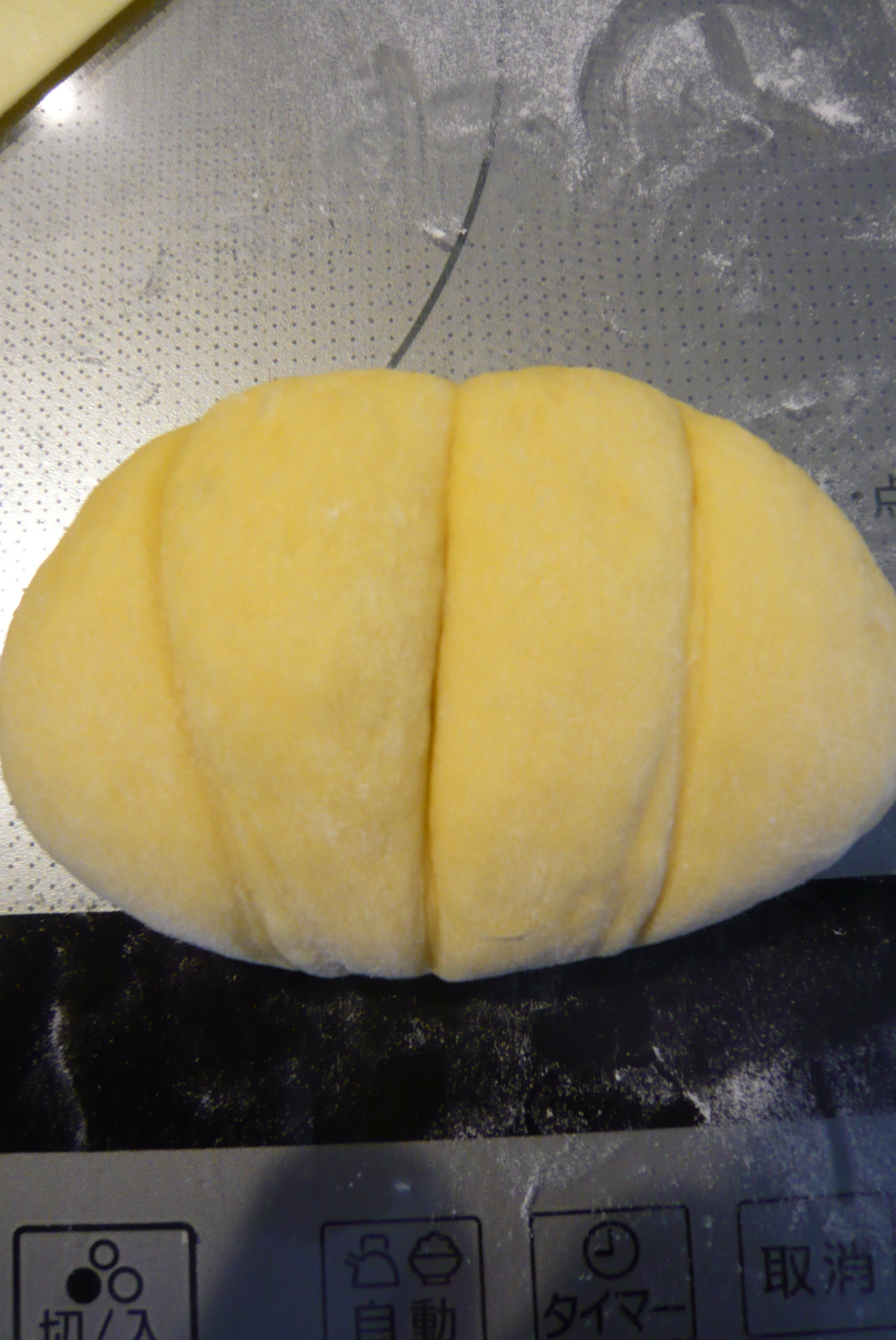 手粉をし、再度ガスを抜き、8等分にして丸める。濡れ布巾を掛けベンチタイム20分。