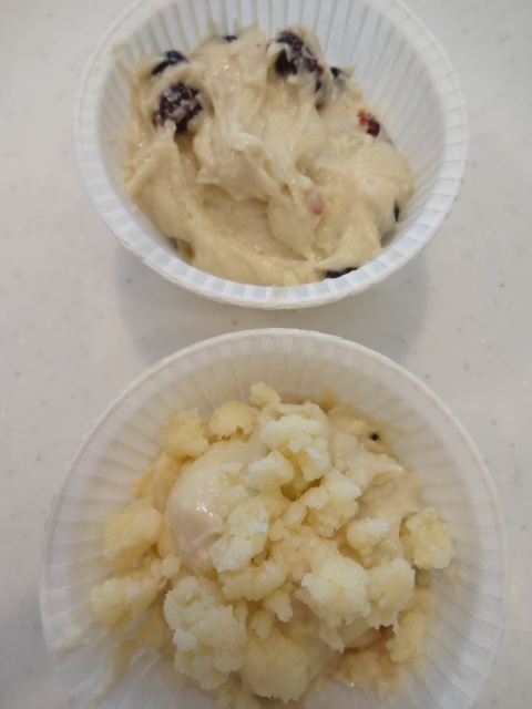 薄力粉と強力粉両方使うことでアメリカンマフィンのどっしりとした味わいが楽しめます。薄力粉だけでも大丈夫です。ややふんわりやわらかな食感になります。