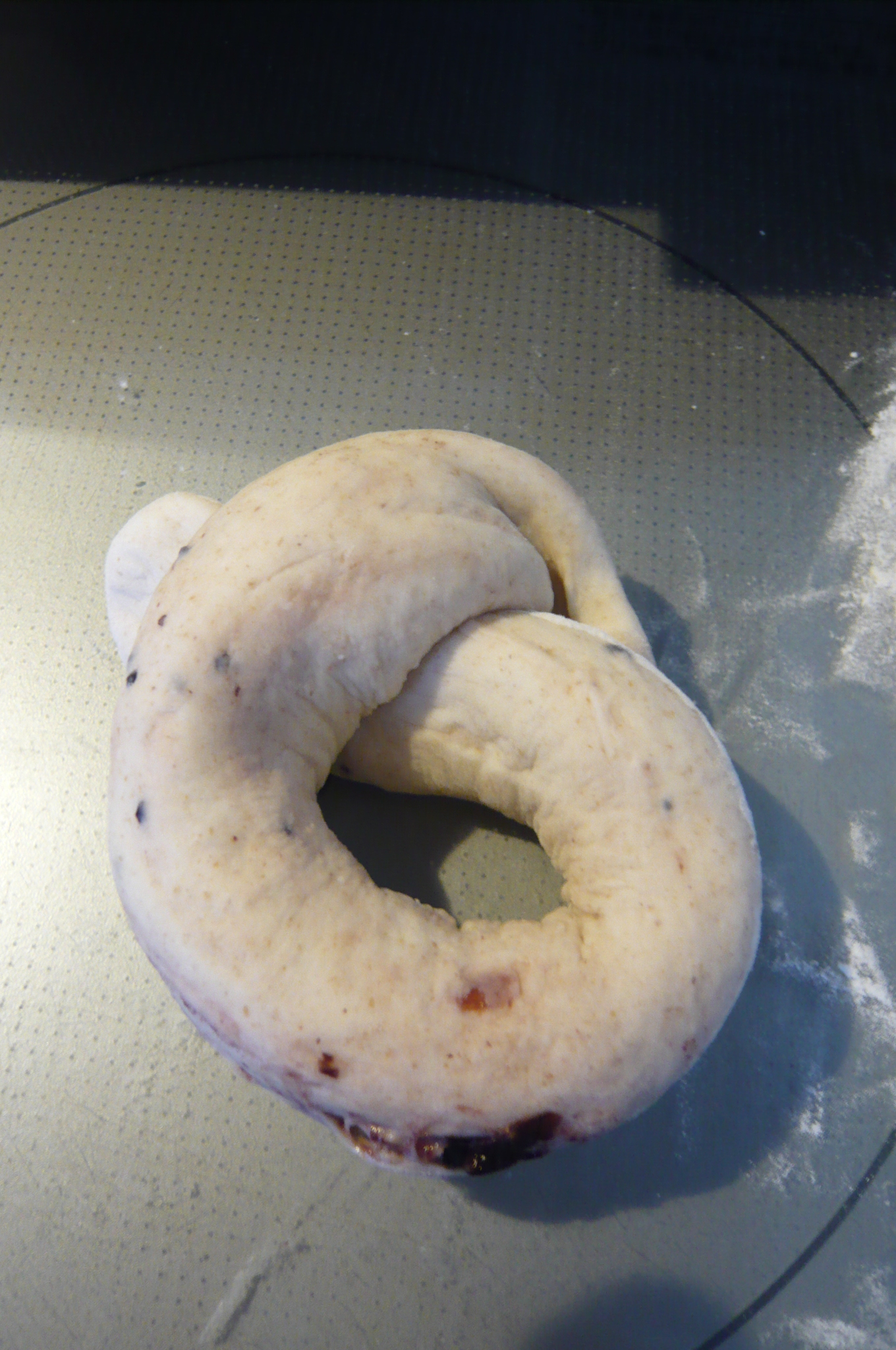 生地の両端を親指でつぶし、端と端をひねって輪にし、つなぎ目をしっかり閉じる。