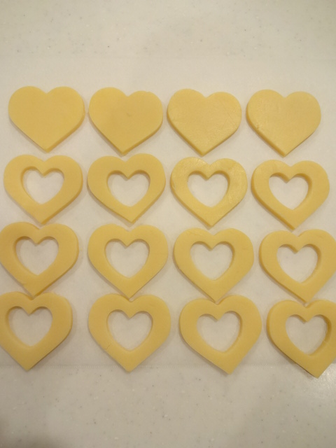 5.5cmハート型で抜き、中心を3cmハート型で抜く。