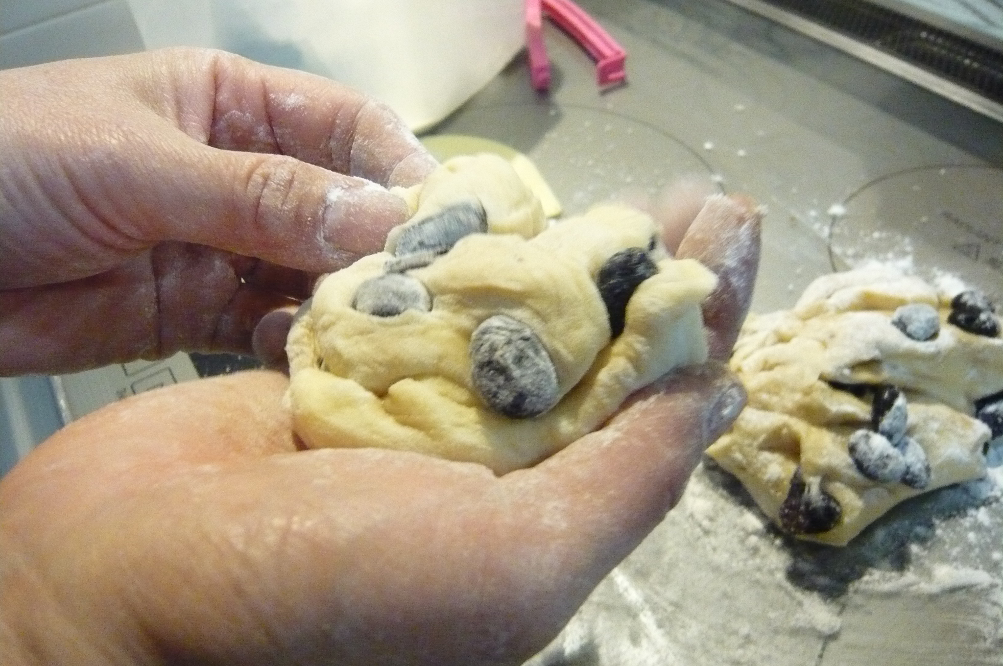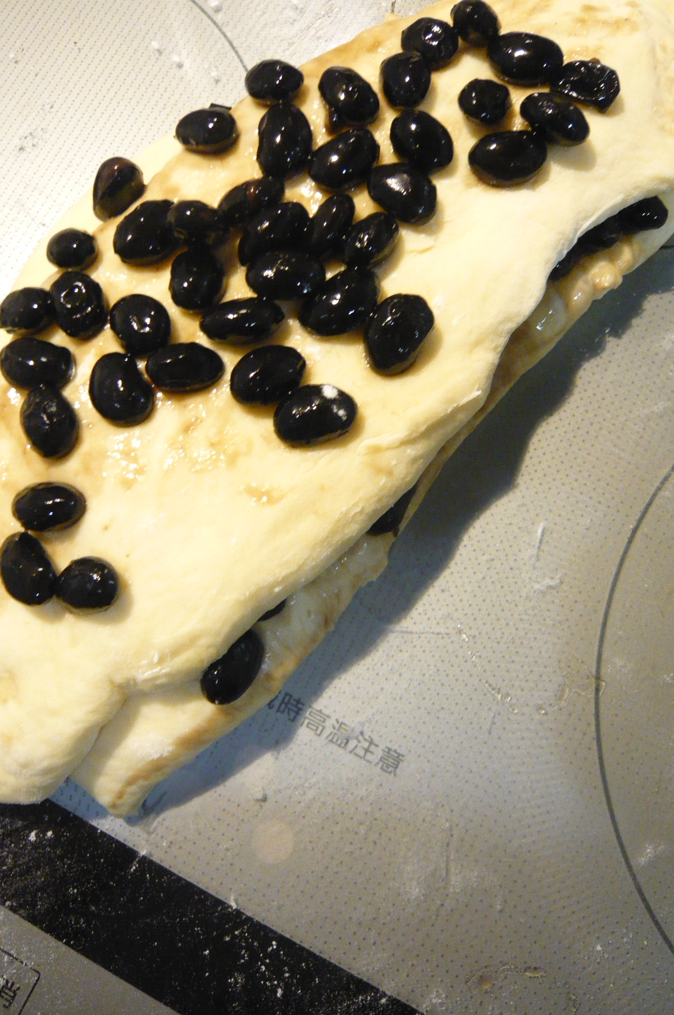 軟らかく煮た黒豆は生地に混ぜ込むとつぶれてしまうので、重ねていく方法にしました。