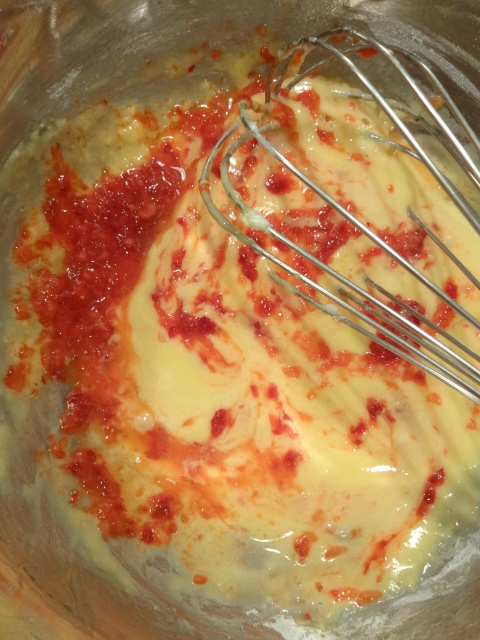 ピューレ状にしたいちごとレモン汁を合わせ、②に加える。