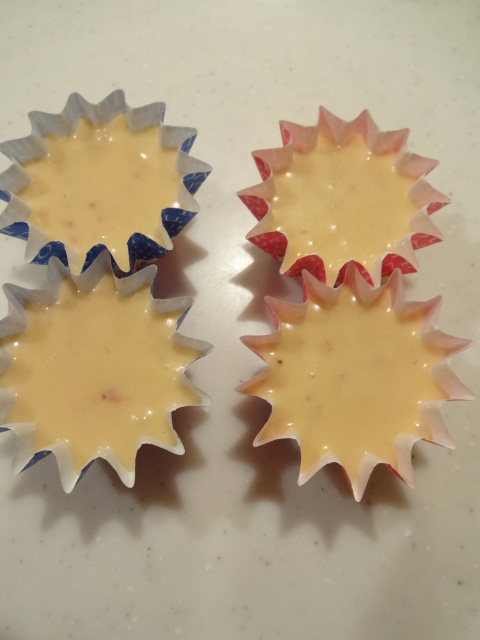 カップの8分目まで生地を入れ、オーブンへ入れる。180℃で10~12分焼く。