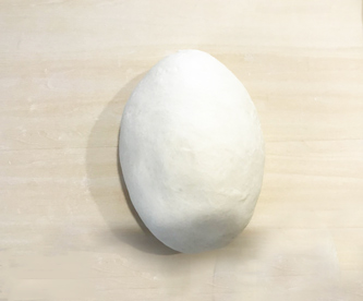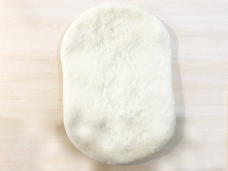 パンチングをし、ガスを抜く。ラグビーボールのような楕円にして丸め、濡れ布巾を掛けベンチタイム10分。