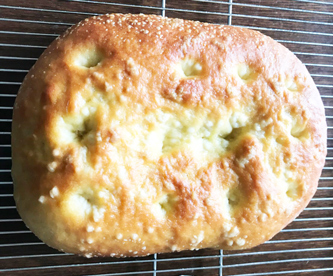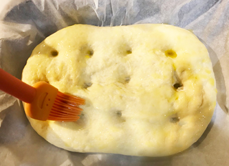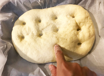 指で穴を12箇所作り、オリーブオイルを塗り、塩をふる。