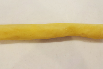 生地を取り出し半分にして、1本を20cmの棒状に成形する。