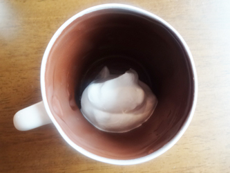 カップのお湯を捨て、ホイップクリームを大スプーン2杯分カップに入れる。