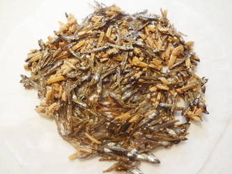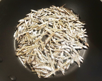 フライパンを弱火で熱し、ごまめを入れ10分ほどかけて炒る。