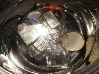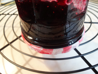 ジャムが熱いうちに煮沸消毒した瓶に入れ、フタをして逆さにしておく。5分経ったら上向きに置き、そのまま冷ます。