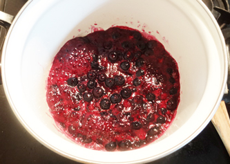 冷凍ブルーベリーで作る場合は水分が多いため生ブルーベリーよりもサラサラになります。お好みで煮詰めてください。