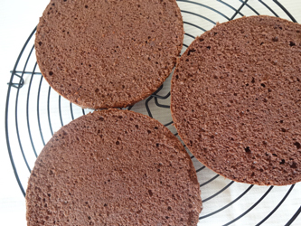 オーブンから出し、型からはずして冷ます。冷めたら3枚にスライスする。
