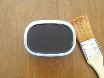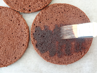 スライスしたスポンジ1枚に刷毛でシロップを打つ。そこへチョコクリームを適量のせスパテラでのばして平らにする。