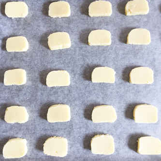 5mmの幅にカットして、間隔をあけてオーブンペーパーを敷いた鉄板に並べます。