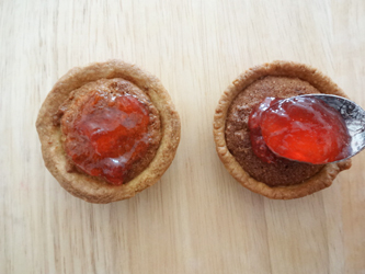 冷めたタルト台にいちごジャムを2gづつ塗る。