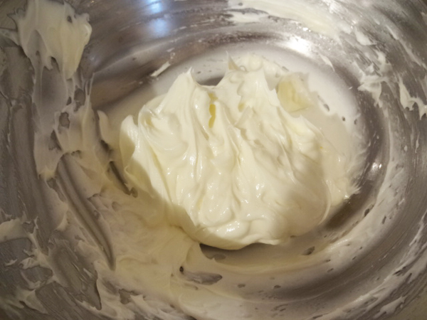 常温でやわらかくしたバターをボウルに入れ、シュガーパウダーを加えて泡だて器で白くふんわりとするまで混ぜる。