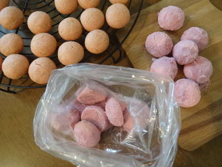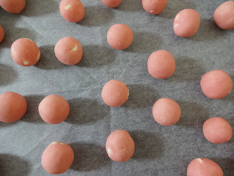 生地を30ケに分け手の平で転がし丸くする。冷蔵庫で1時間以上休ませる。