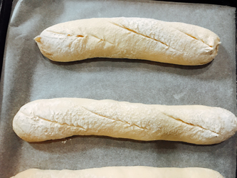 焼くとメープルバターがクープから少し出てきますが、クープがないと生地が割れて下から出てきてしまうのでクープはつけてください。