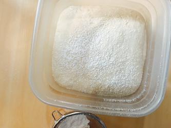蓋付きの容器に入れ、蓋をして、野菜室で5時間以上、1次発酵させる。
