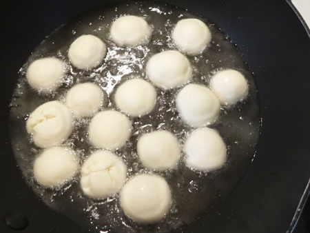 160℃に温めた油に生地を入れ、3~5分、裏返して3~5分揚げる。