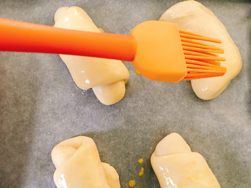 オーブン210度で予熱。180度に下げ、溶き卵を塗り15分ほど焼く。