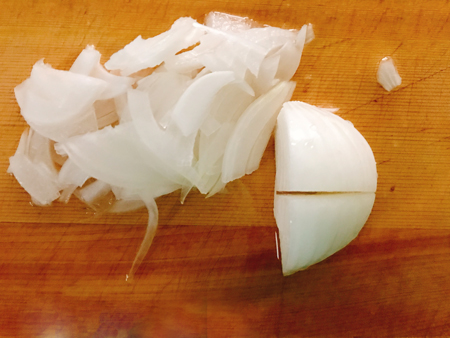 新玉ねぎをスライスしておく。