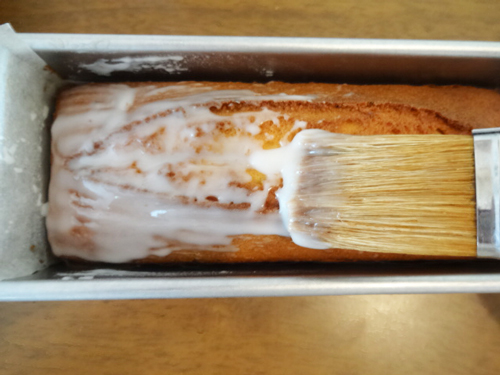 粗熱のとれたパウンドの表面にアイシングを塗り、レモンライムのシロップ漬を飾る。アイシングが乾くまで常温におく。 ※パウンド型に入れて塗ると上部だけきれいに塗れます。