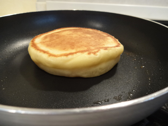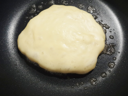 ※ベーキングパウダーで作る生地と違い、弾力のある生地なので無理に広げようとはせずにフライパンに置く感じ。