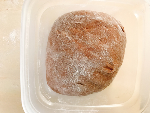 生地がやわらかかったら、蓋付き容器に入れ、野菜室で1時間ほど休ませる。
