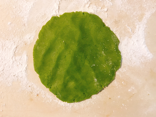 クッキー生地は5ミリくらいの厚さに伸ばし、パン生地のほうに軽く水をつけ、クッキー生地で全て包み込む。