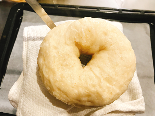 先程の天板に並べ、濡れ布巾を掛け、ビニール袋で全体を覆う。一回り大きくなるまで、生地を休ませる。