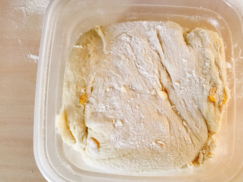 生地がやわらかめなので1次発酵後冷蔵庫で生地を休ませると扱いやすくなります。
