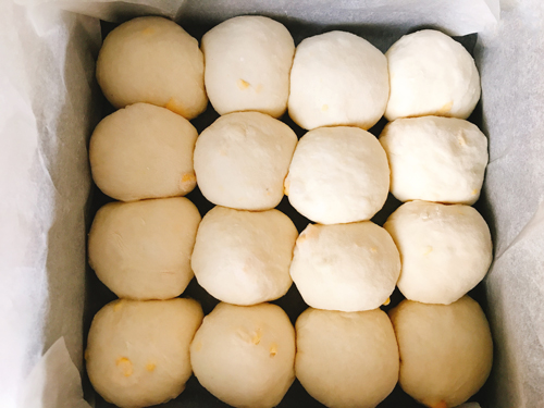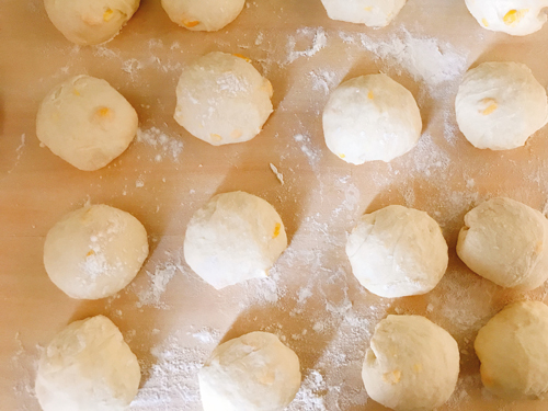 16分割し、丸めて閉じ目をしっかり閉じる。濡れ布巾を掛けベンチタイム20分。