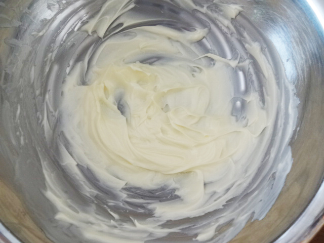 別のボウルにクリームチーズを入れやわらかくなったら、レモン汁を少しずつ加え混ぜる。