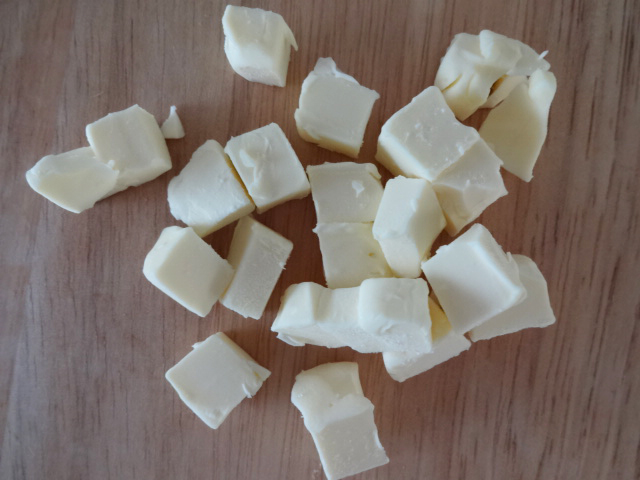 無塩バターを1cm角に切り、冷凍庫で冷やす。