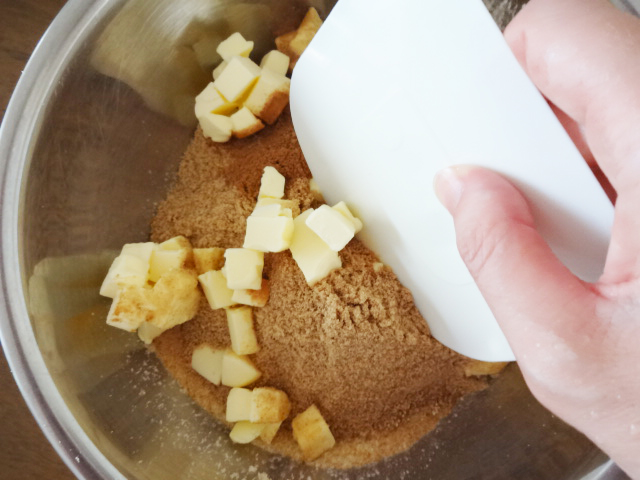 1.2を取り出し合わせてカードでバターを細かく切り混ぜる。