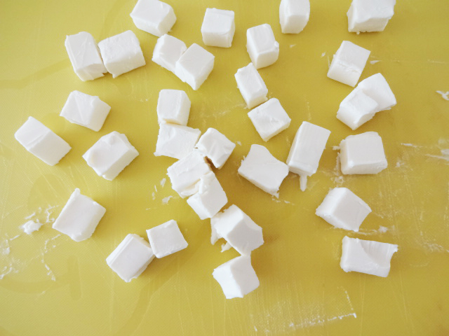 クリームチーズを5mm角ほどに切る。