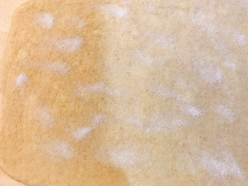 グラニュー糖の半量を全体にふり、しっかりと巻いていく。