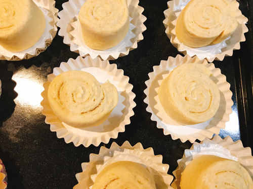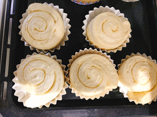 天板に並べ、全体をビニール袋で包み、暖かいところで、2次発酵60分。