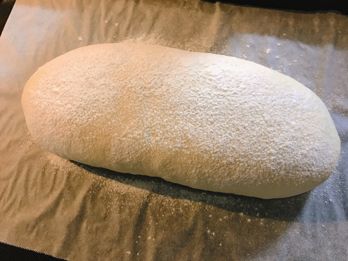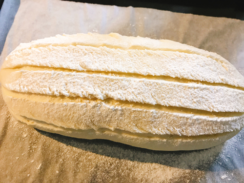 オーブン230度で予熱。分量外の強力粉を掛け、5本クープを入れる。