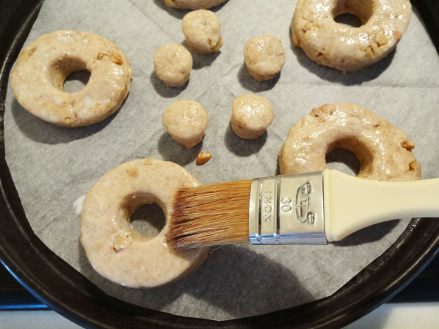 オーブンペーパーを敷いた天板に並べ、刷毛で牛乳(分量外)を薄く塗る。