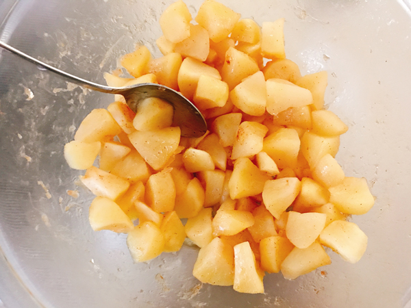 シナモンを振りいれ、粗熱が取れたらブランデーをふり、混ぜる。