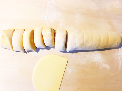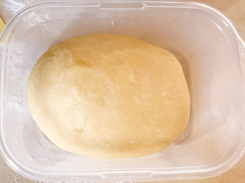 手粉をし、ガスを抜く。丸めて、密閉容器に入れ冷蔵庫に入れ30分ほど休ませる。