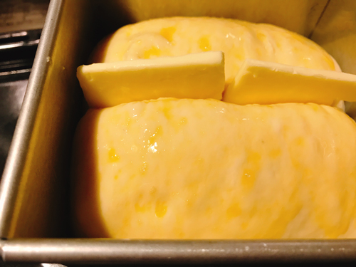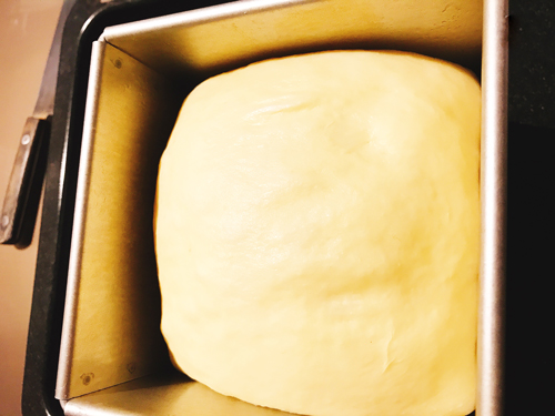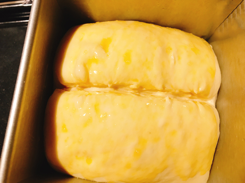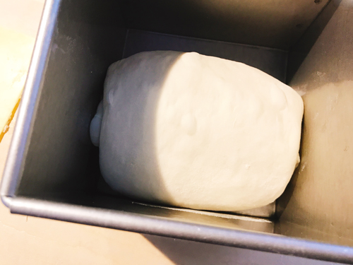 油を塗った型に生地を入れ2次発酵。型の8分目になるまで。