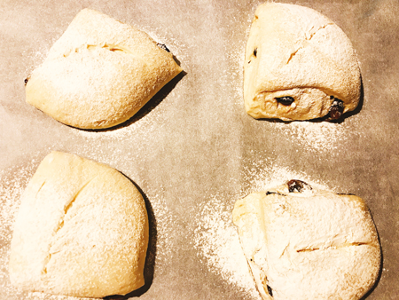 ポリ袋で全体を覆い2次発酵60分。オーブンは260度に予熱しておく。