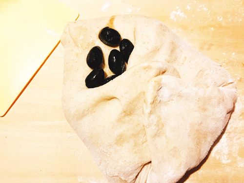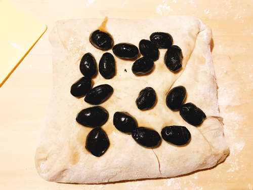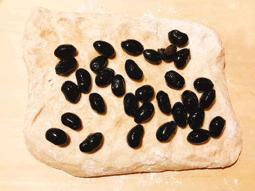 角を折りたたみ、残りの黒豆を同じようにのせる。
